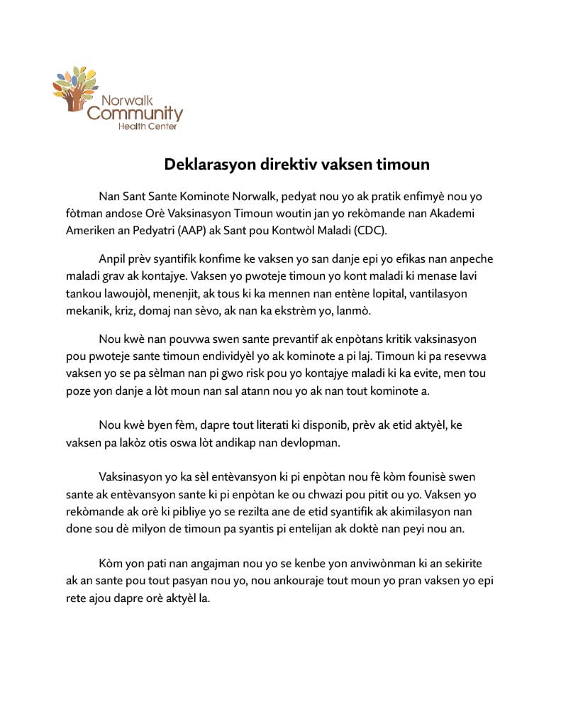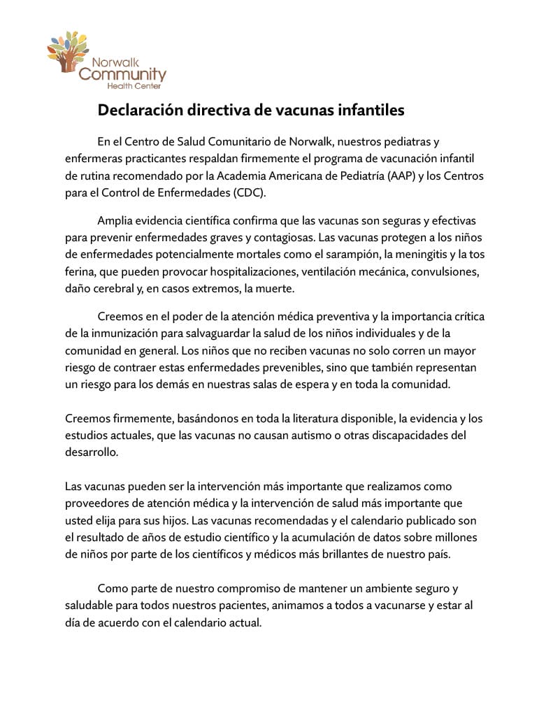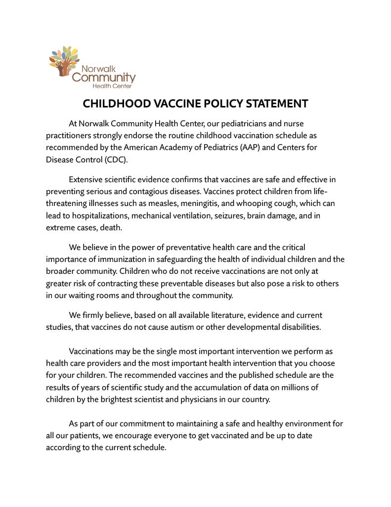 View the NCHC Childhood Vaccine Policy Statement